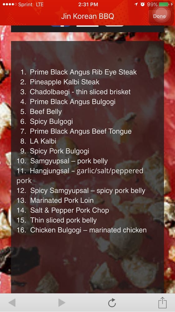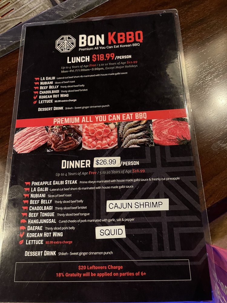 Jin Korean BBQ Plano is a bustling restaurant offering a wide array of Korean BBQ and seafood options. Located in Plano, TX, the eatery boasts a range of amenities including reservation options, delivery, takeout, and wheelchair accessibility. Vegetarian options are plentiful, and the restaurant accepts various forms of payment, including cryptocurrency. The modern ambiance and attentive service make dining here a pleasant experience. Customers rave about the quality of the raw meats for grilling and the flavorful cooked dishes. Special mentions go to the pineapple galbi and spicy pork. The all-you-can-eat option is a hit with serious meat lovers, offering great value for money. Despite some minor issues with wait times, the overall consensus is that Jin Korean BBQ Plano is a must-visit for delicious Korean BBQ in a lively setting.